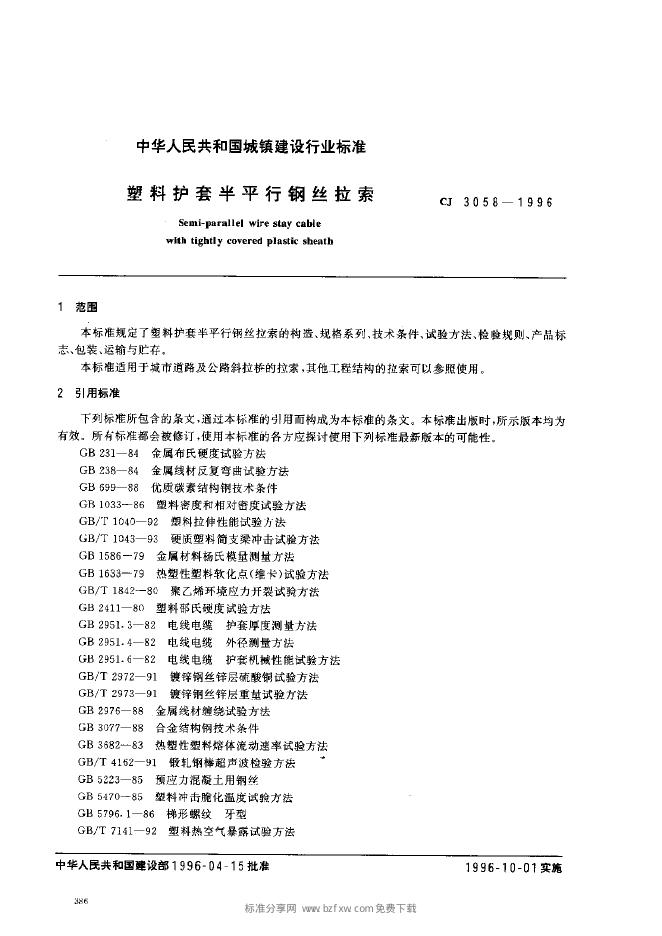 CJ/T 3058-1996 塑料护套半平行钢丝拉索
