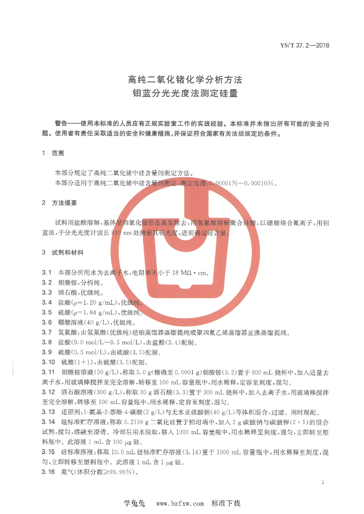YS/T 37.2-2018 高纯二氧化锗化学分析方法 钼蓝分光光度法测定硅量