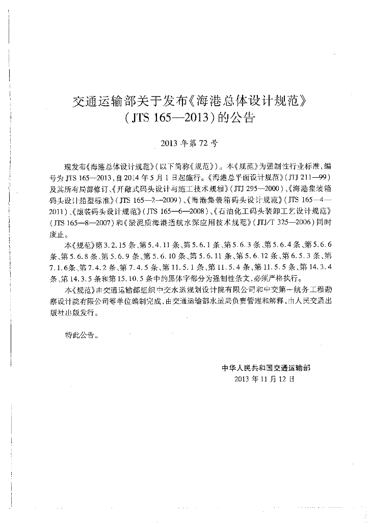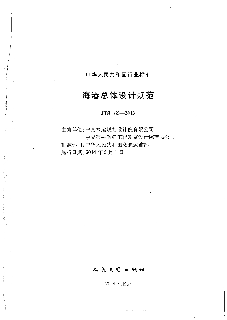 JTS 165-2013 海港总体设计规范(含2025年局部修订)