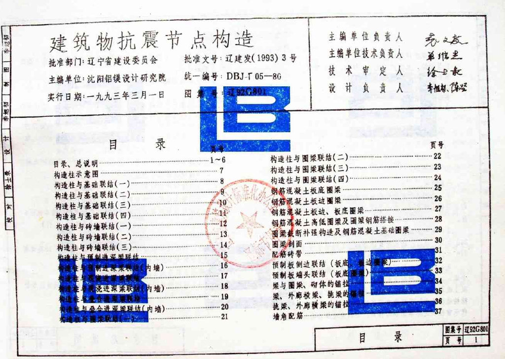 辽92G801 建筑物抗震节点构造(多层砖房、底层框架砖房、内框架砖房)图集