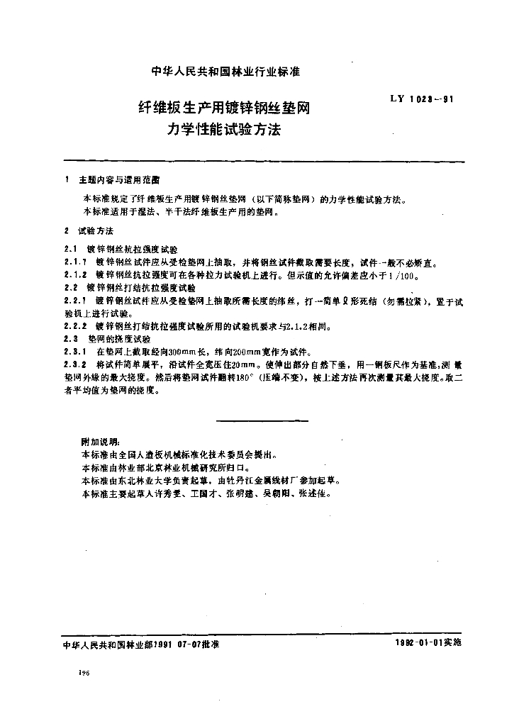 LY 1023-1991 纤维板生产用镀锌钢丝垫网力学性能试验方法