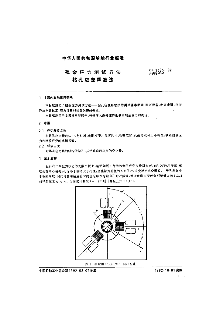 CB 3395-1992 残余应力测试方法钻孔应变释放法