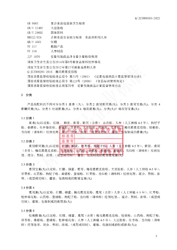 Q/JLYH 0050S-2022 鹿膏(丸)