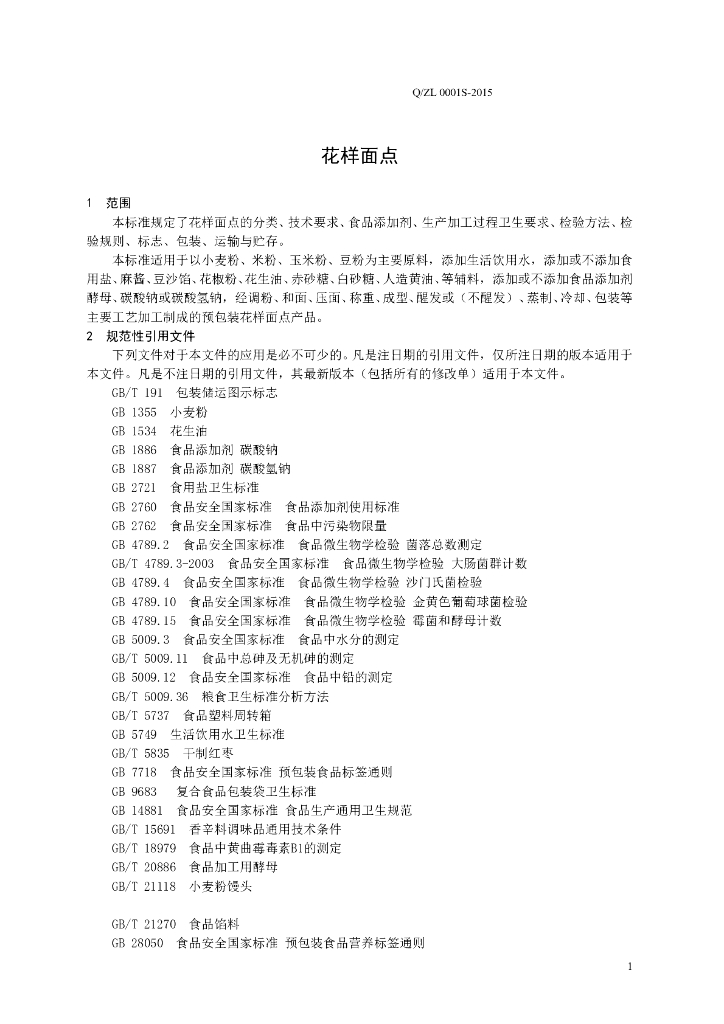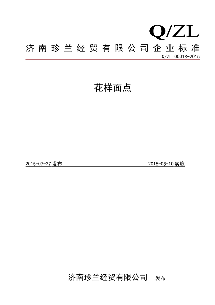 Q/ZL 0001S-2015 济南珍兰经贸有限公司 花样面点