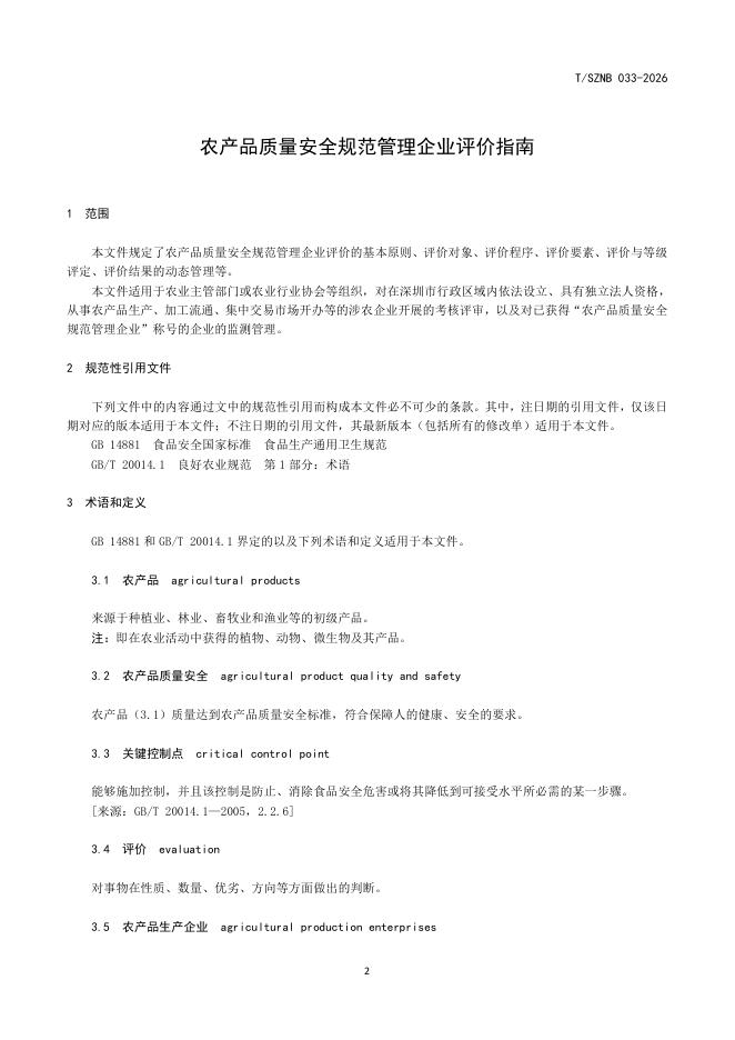 T/SZNB 033-2026 农产品质量安全规范管理企业评价指南