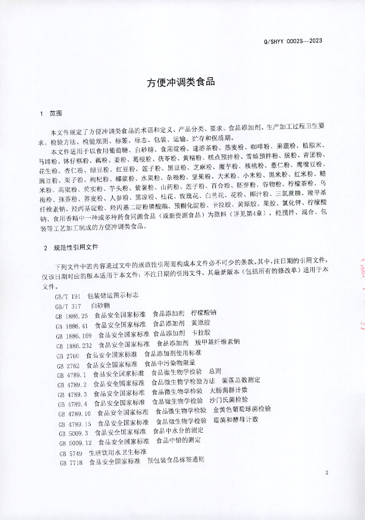 Q/SHYY 0002S-2023 便冲调类食品