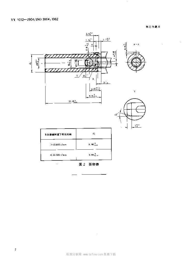 YY 1012-2004/ISO 3964:1982 牙科手机联轴节尺寸