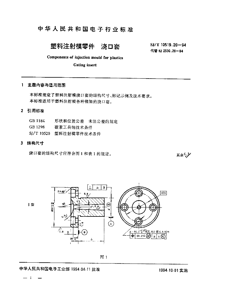SJ/T 10519.20-1994 塑料注射模零件 浇口套