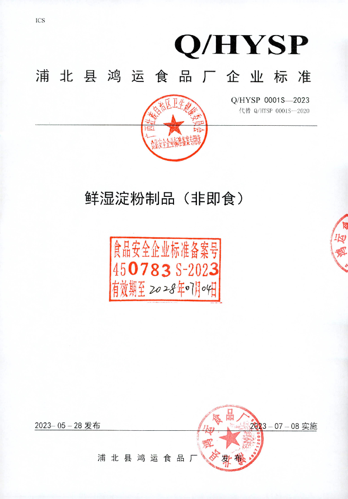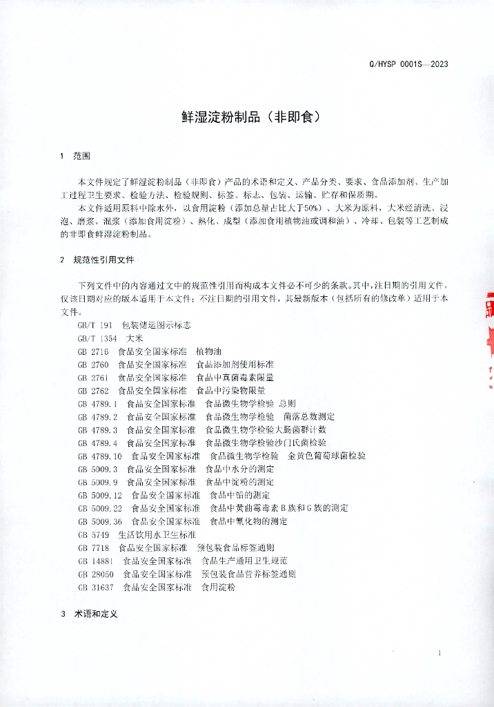 Q/HYSP 0001S-2023 鲜湿淀粉制品(非即食)