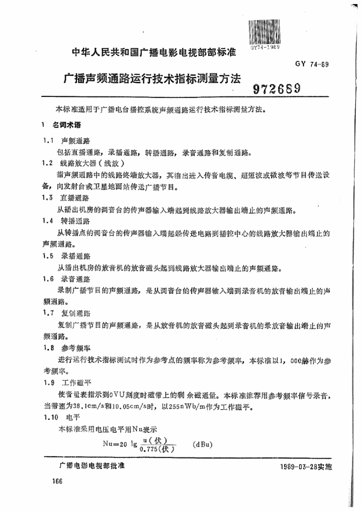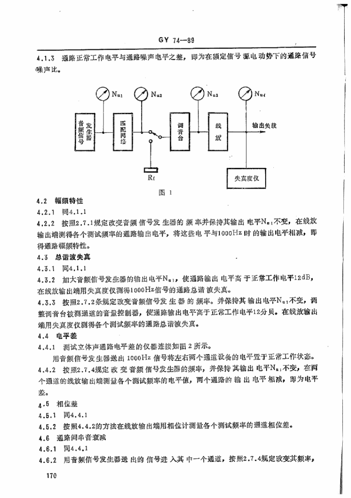 GY 74-1989 广播声频通路运行技术指标测量方法