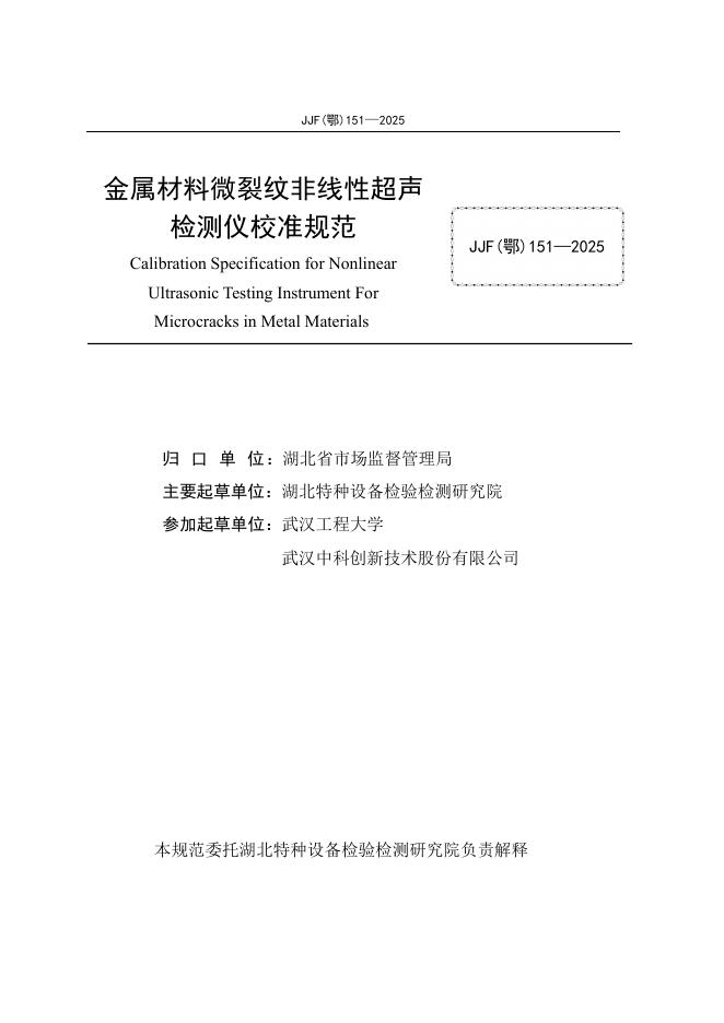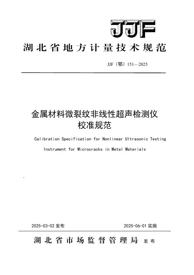 JJF(鄂)151-2025 金属材料微裂纹非线性超声检测仪校准规范