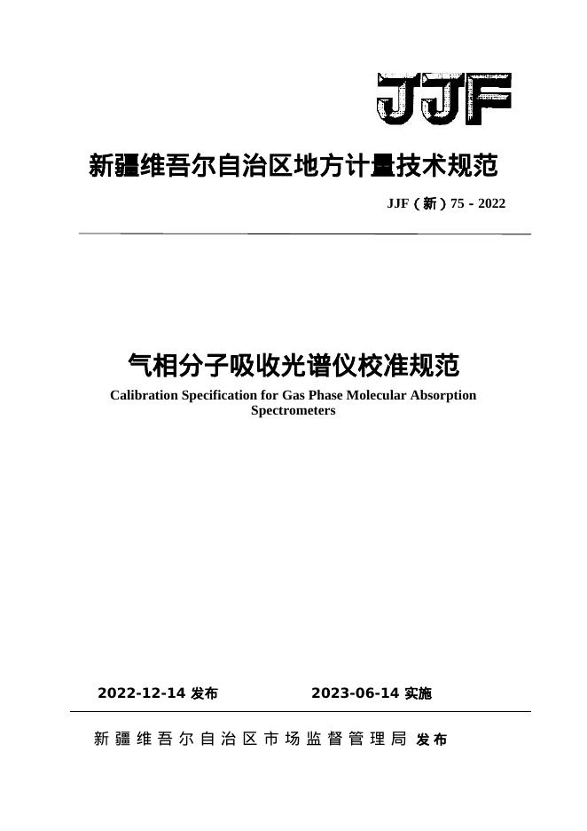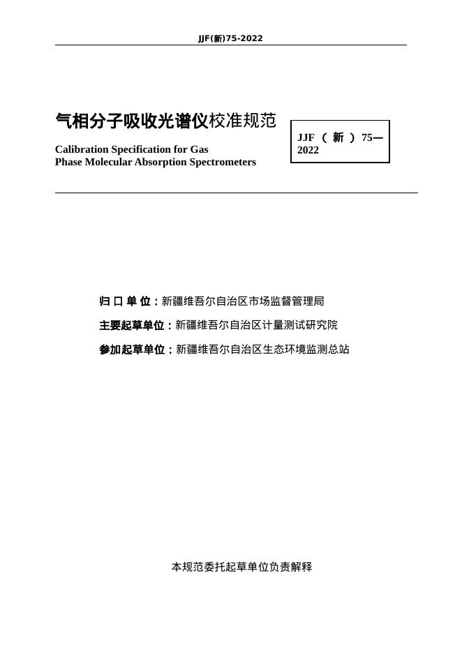JJF(新)75 2022 气相分子吸收光谱仪校准规范