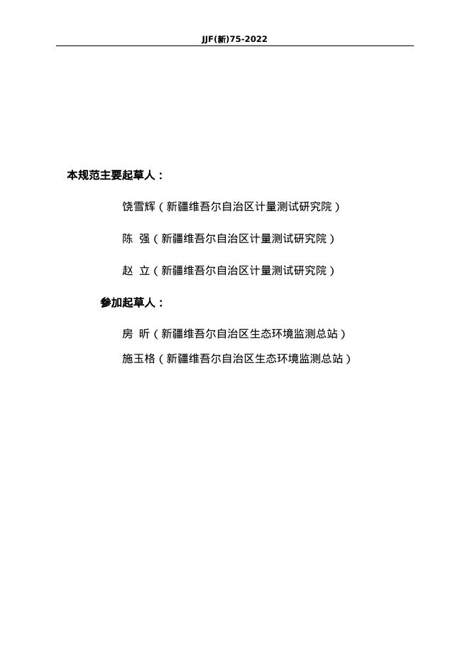 饶雪辉(新疆维吾尔自治区计量测试研究院)、陈强(新疆维吾尔自治区计量测试研究院)、赵立(新疆维吾尔自治区计量测试研究院)、房昕(新疆维吾尔自治区生态环境监测总站)、施玉格(新疆维吾尔自治区生态环境监测总站)