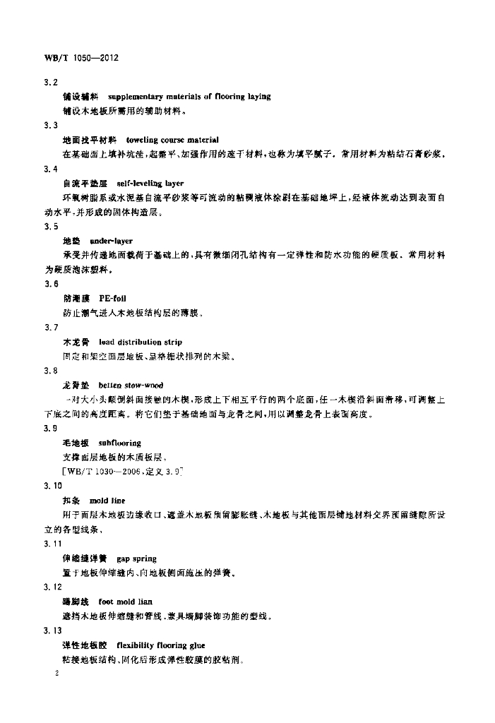 WB/T 1050-2012 木地板铺设辅料