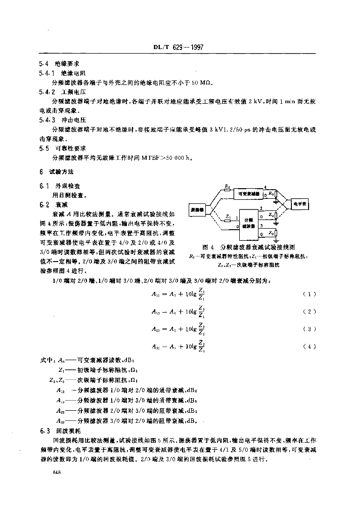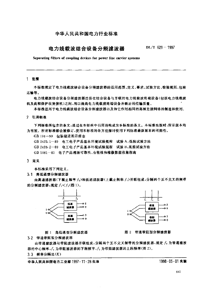 DL/T 629-1997 电力线载波结合设备分频滤波器