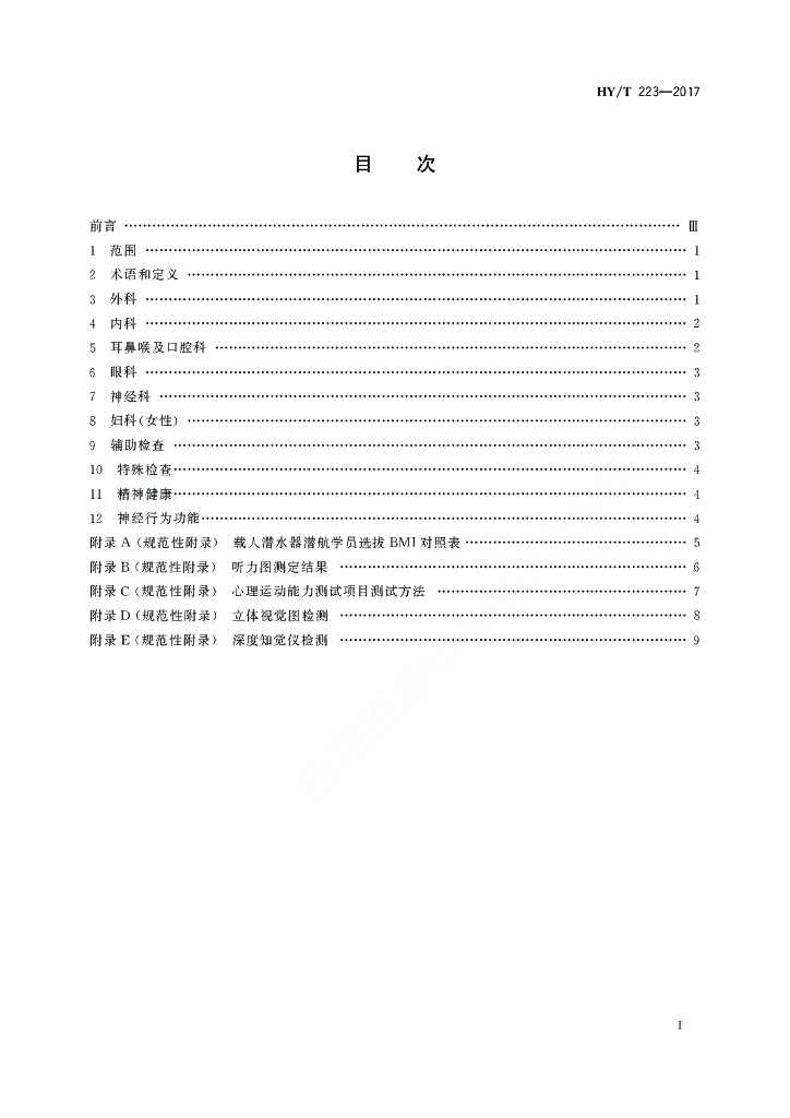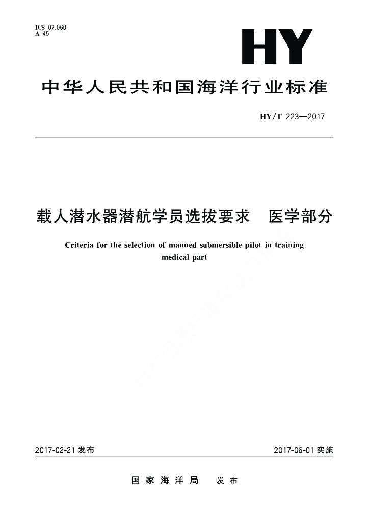 HY/T 223-2017 载人潜水器潜航学员选拔要求 医学部分