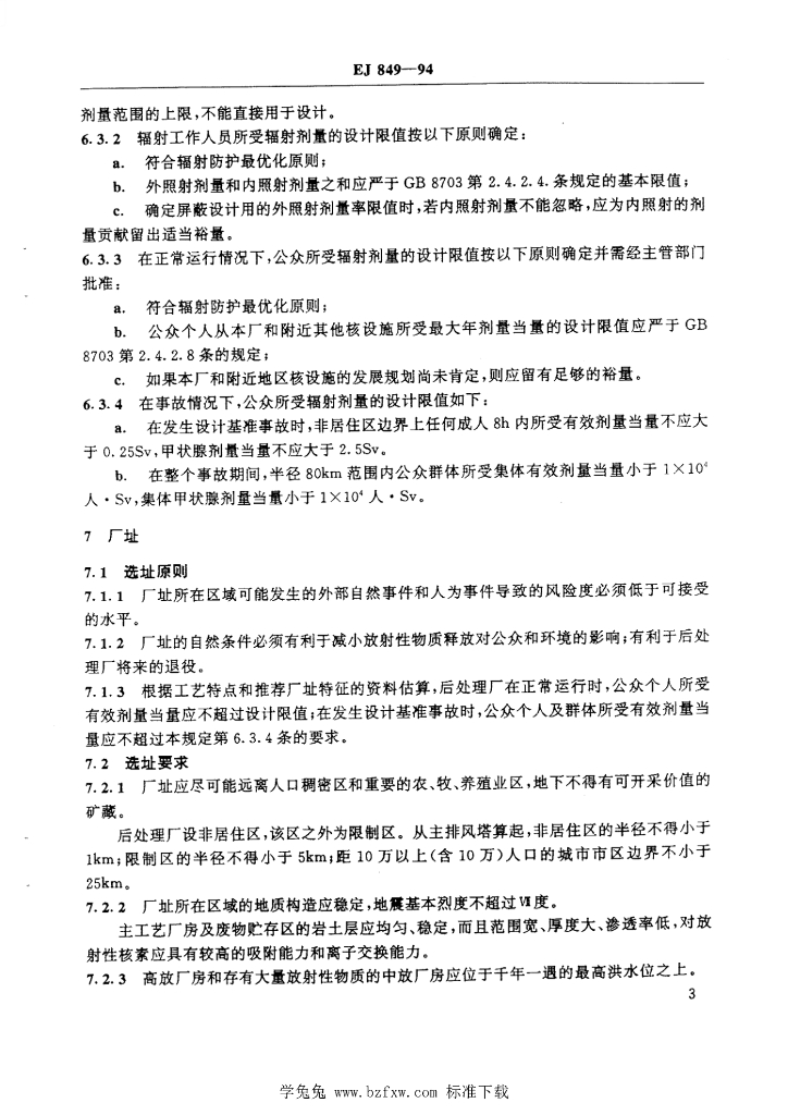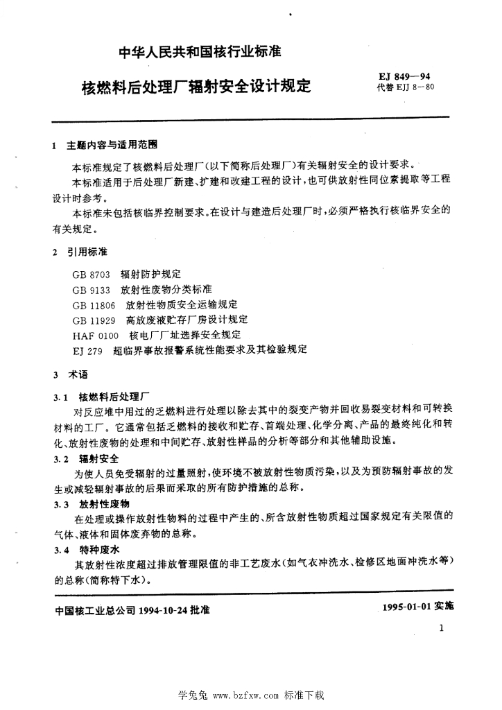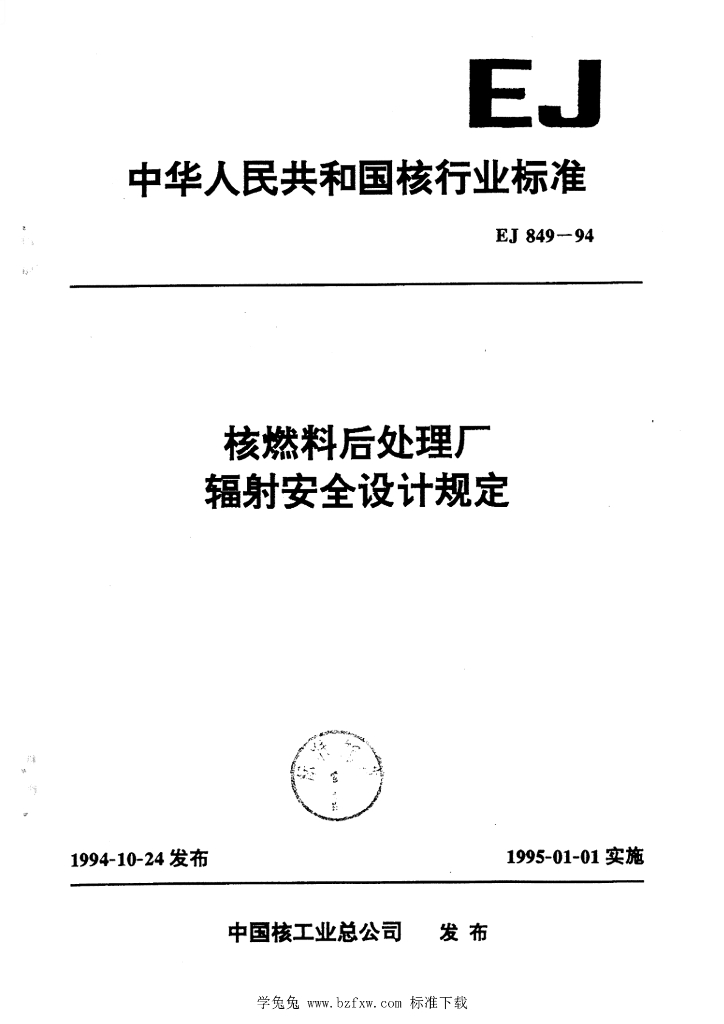 EJ 849-1994 核燃料后处理厂辐射安全设计规定