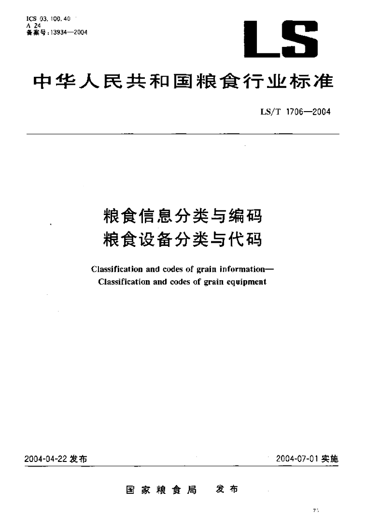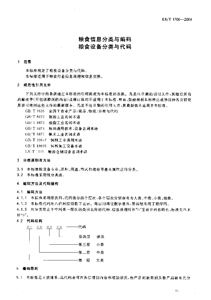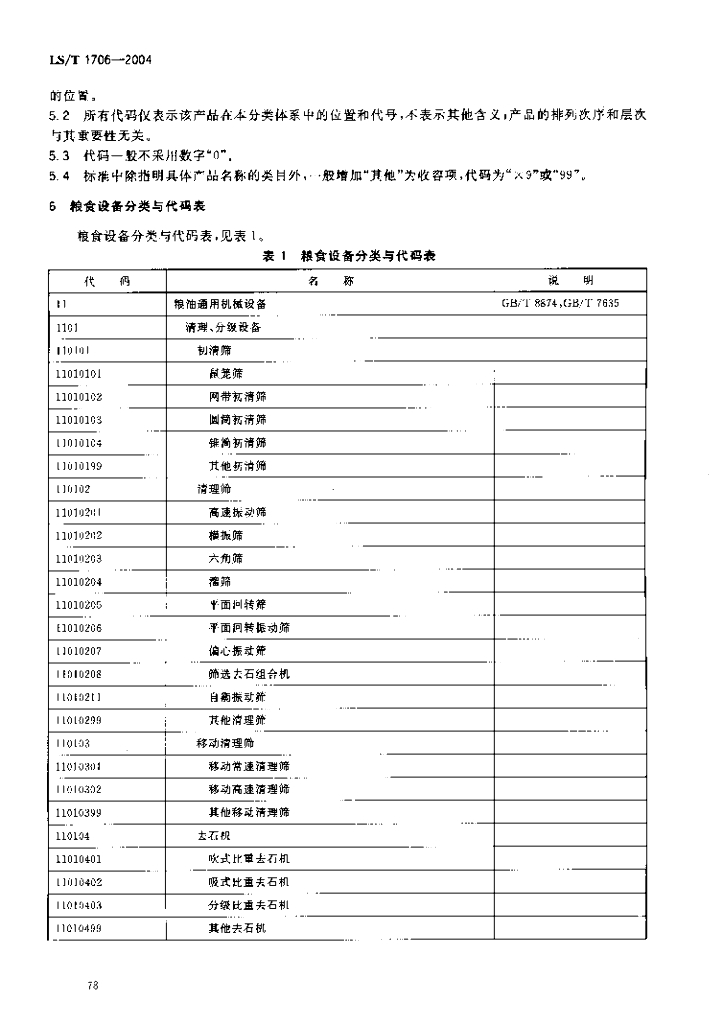 LS/T 1706-2004 粮食信息分类与编码 粮食设备分类与代码