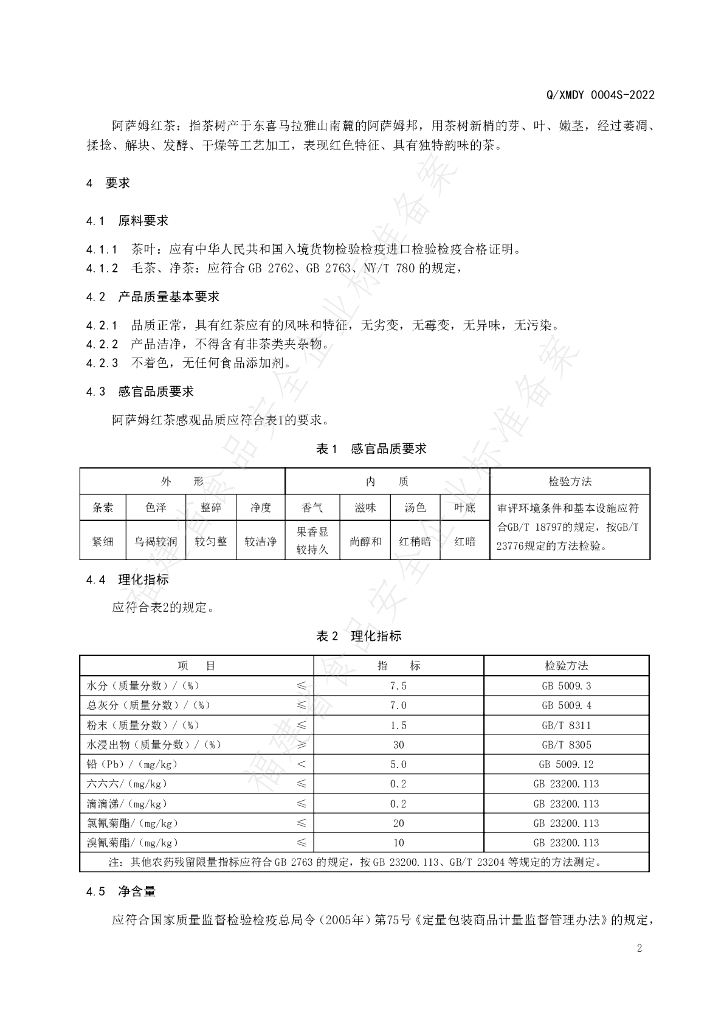 Q/XMDY 0004S-2022 阿萨姆红茶