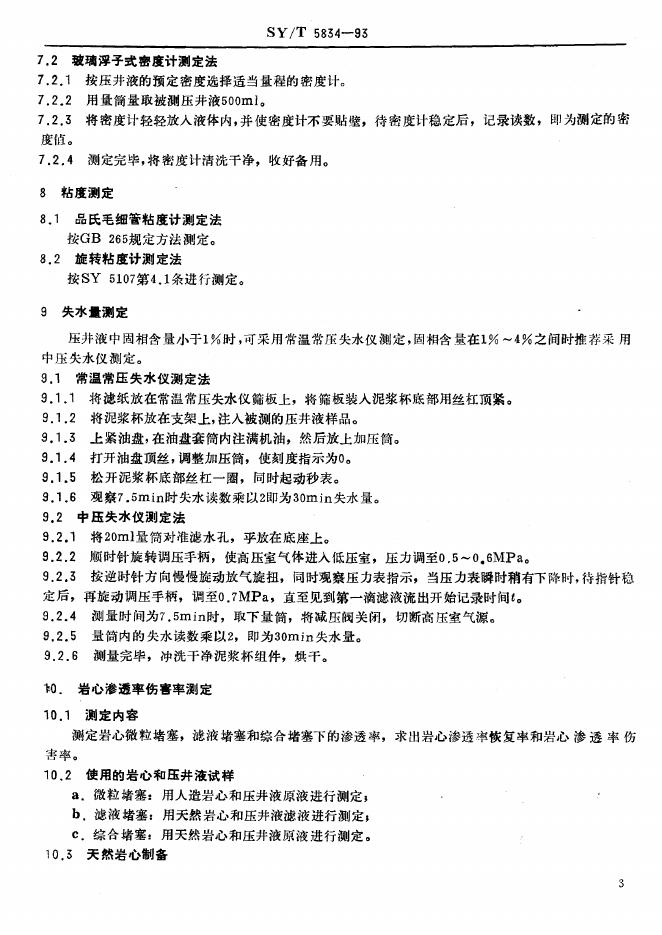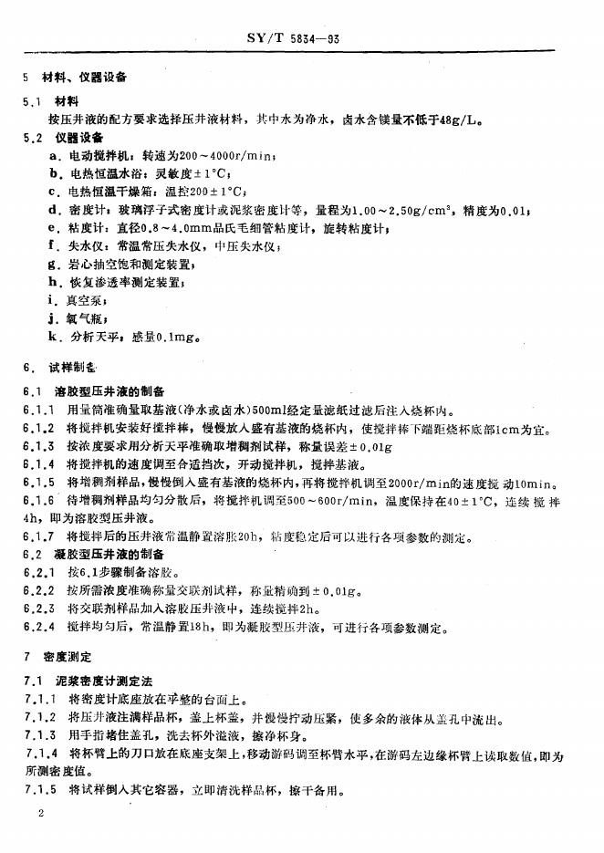 SY/T 5834-1993 低固相压井液性能测定方法及评价指标