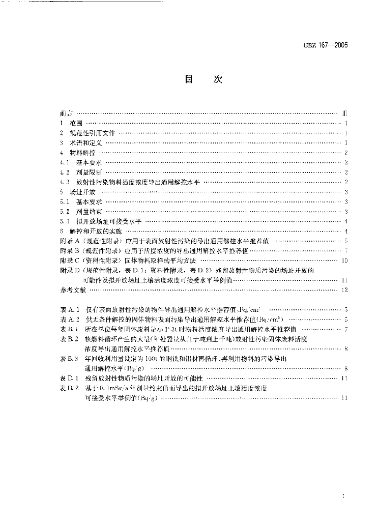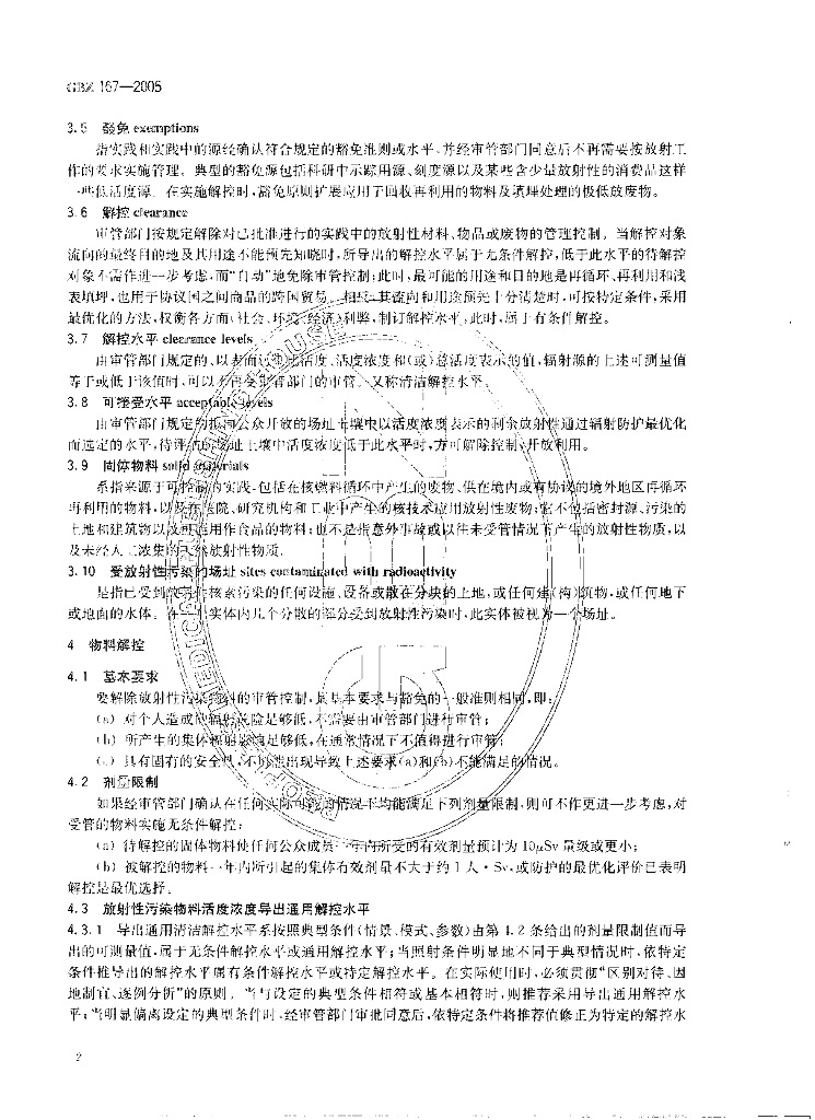 GBZ 167-2005 放射性污染的物料解控和场址开放的基本要求