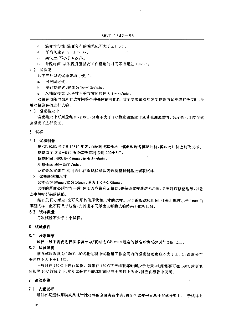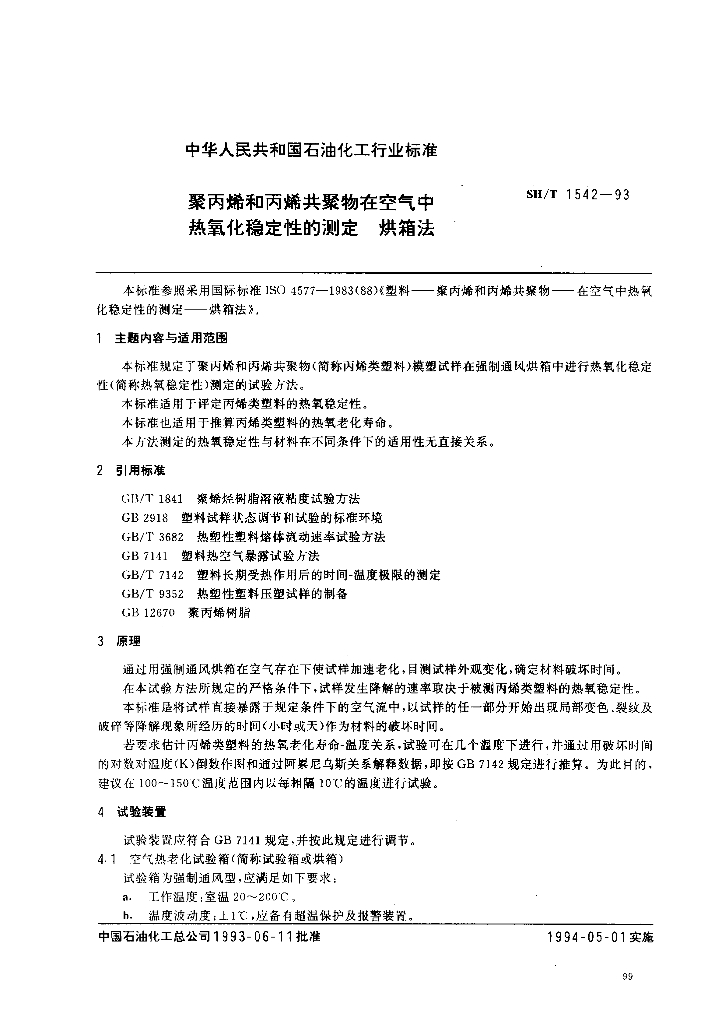 SH/T 1542-1993 聚丙烯和丙烯共聚物在空气中热氧化稳定性的测定烘箱法