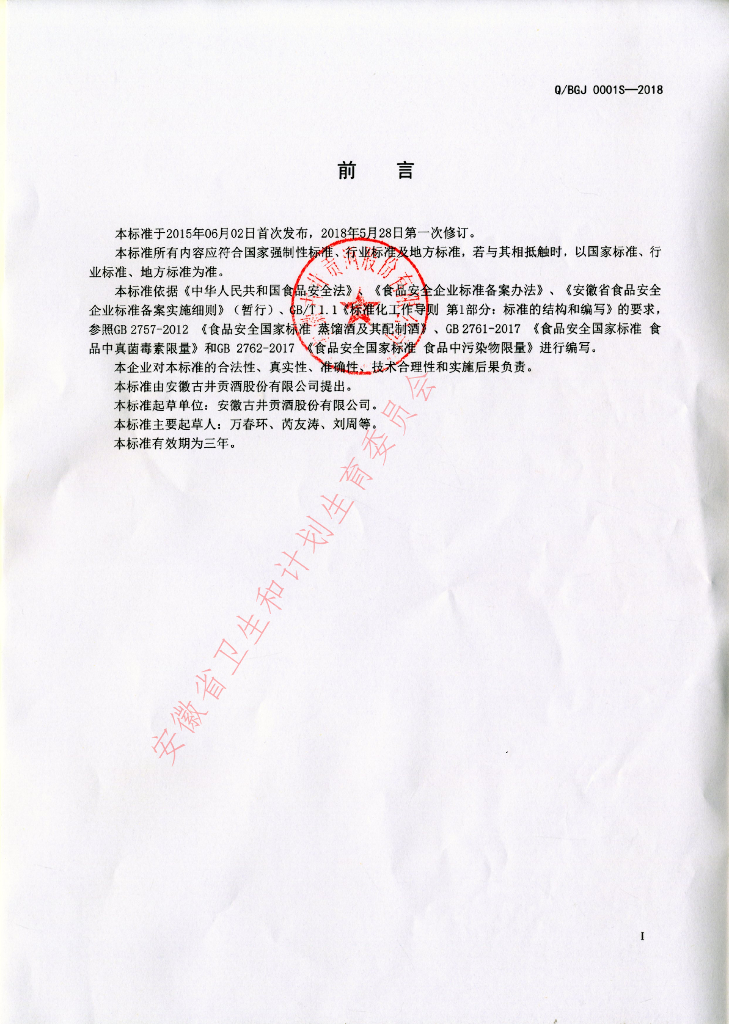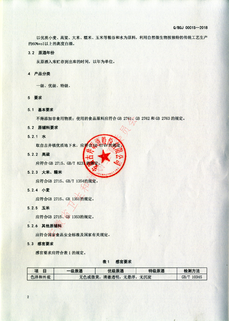 Q/BGJ 0001S-2018 古井贡酒原酒