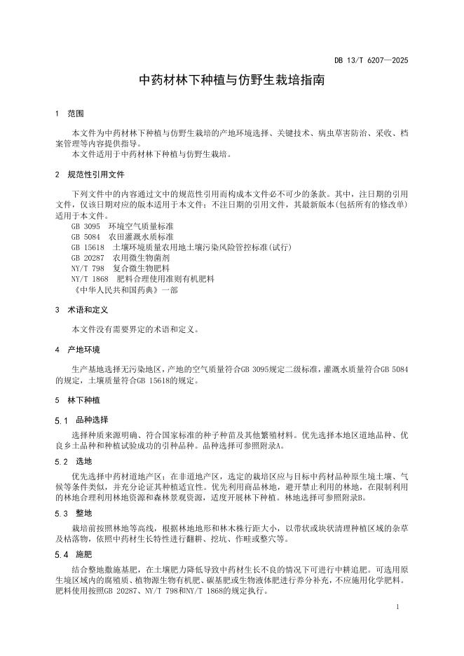 DB13/T 6207-2025 中药材林下种植与仿野生栽培指南