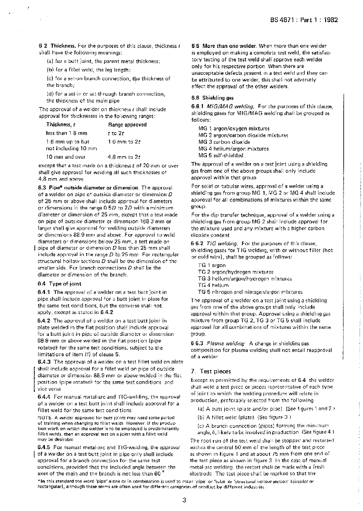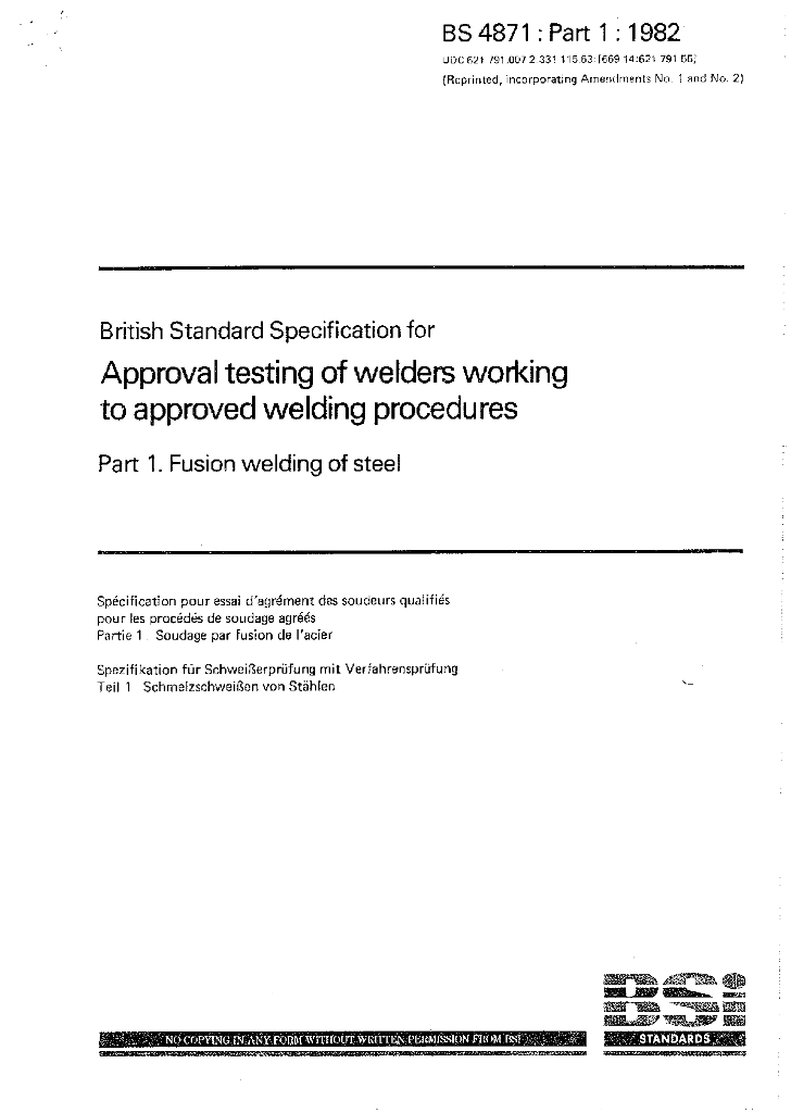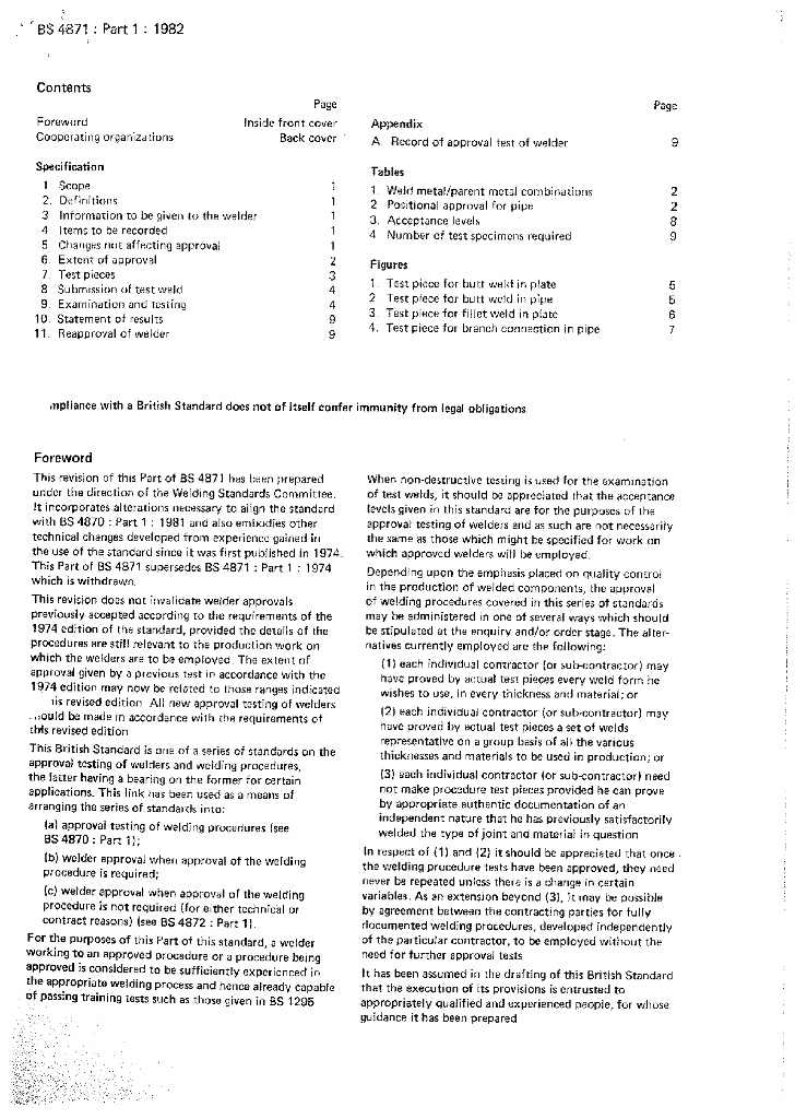 BS 4871-1-1982 按认可焊接工艺操作的焊工鉴定考试规范.第一部分金属溶接焊