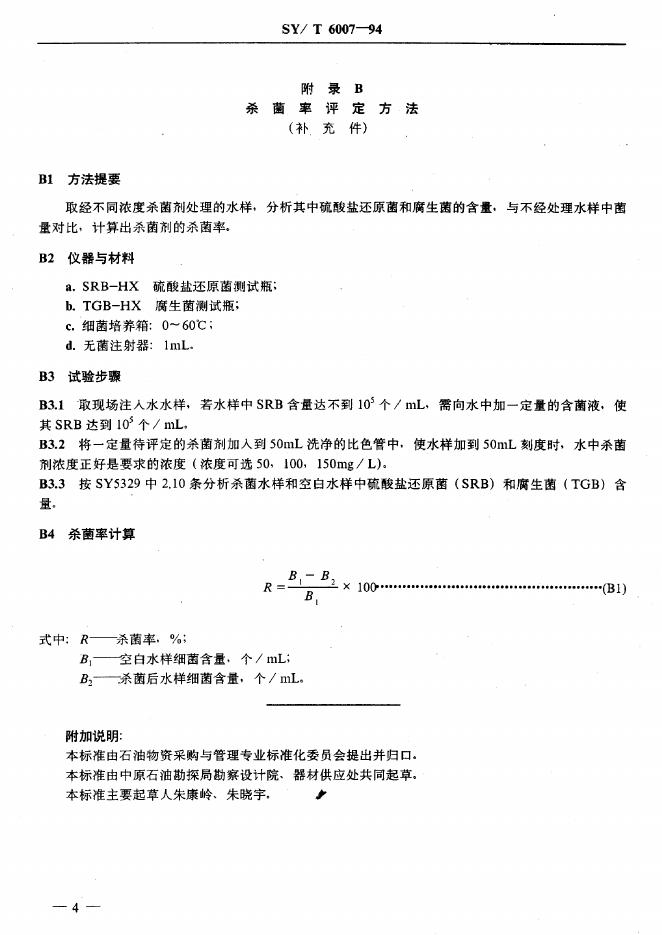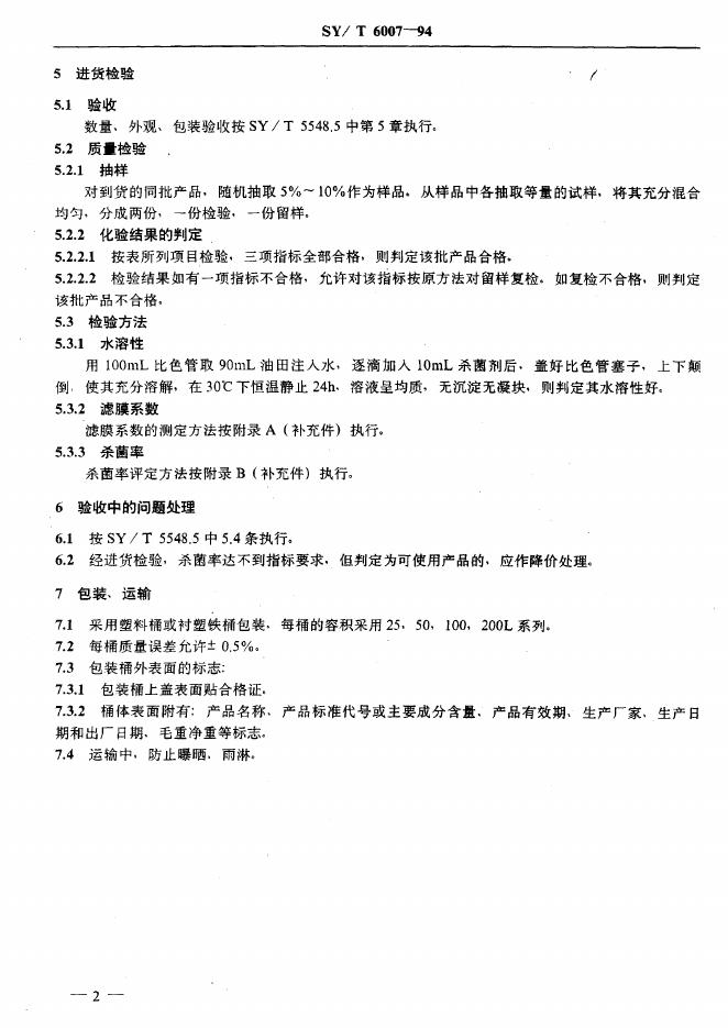 SY/T 6007-1994 油田注水水质处理用杀菌剂采购规定