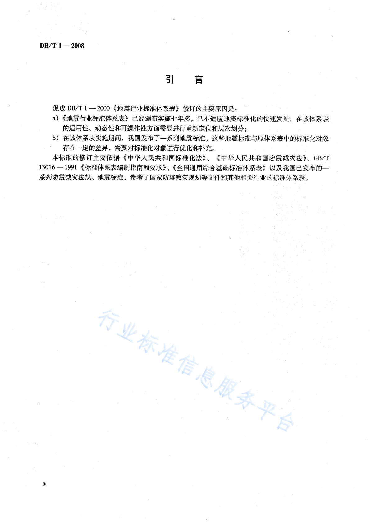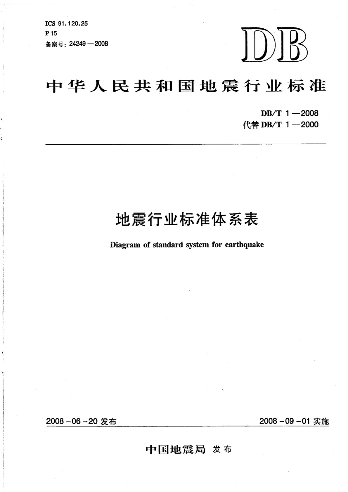 DB/T 1-2008 地震行业标准体系表