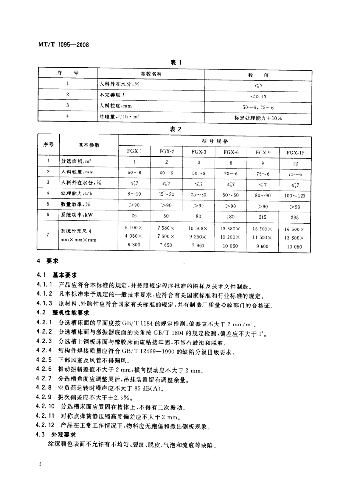 MT/T 1095-2008 煤用复合式干法分选机