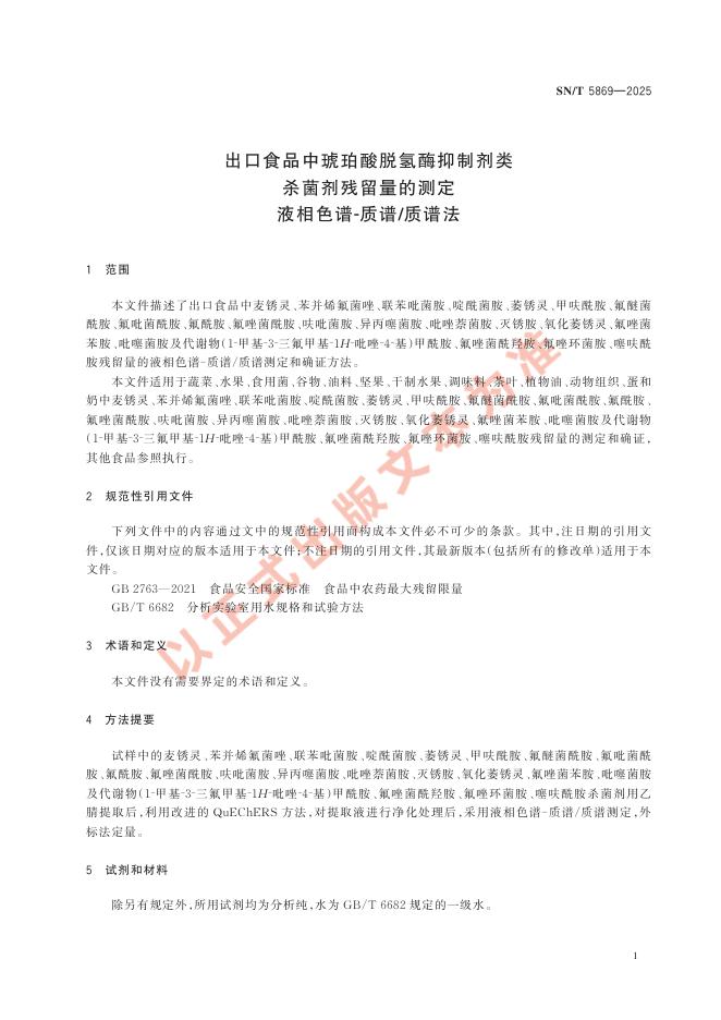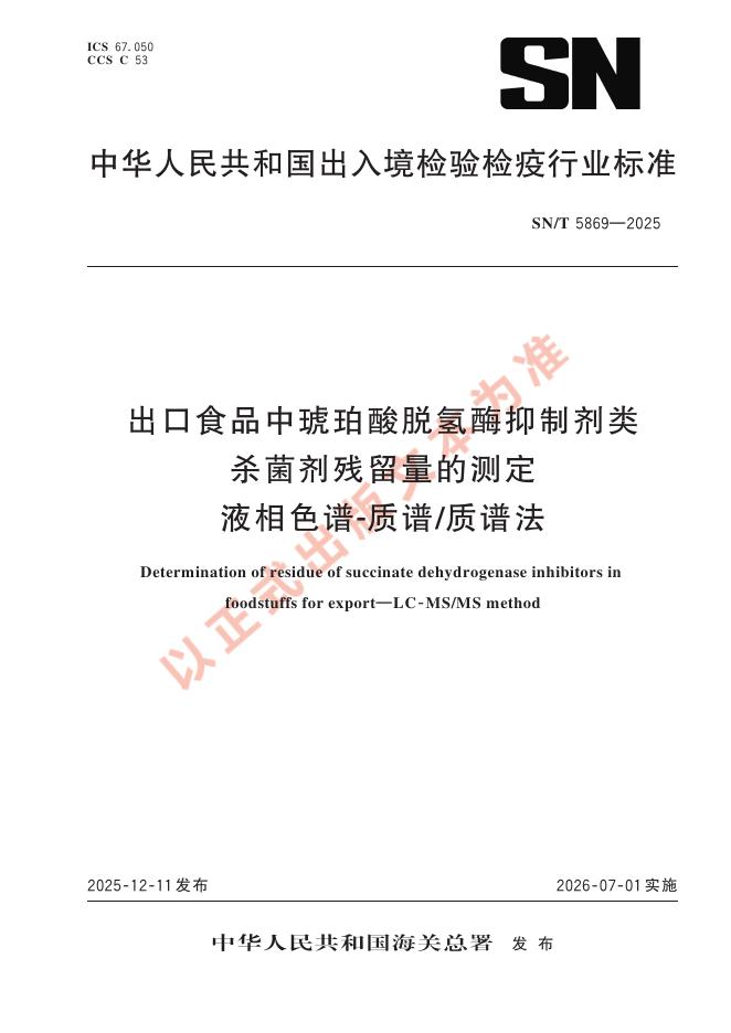 SN/T 5869-2025 出口食品中琥珀酸脱氢酶抑制剂类杀菌剂残留量的测定 液相色谱-质谱/质谱法