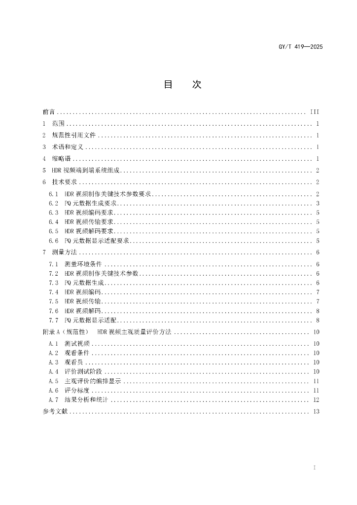 GY/T 419-2025 高动态范围视频端到端技术要求和测量方法