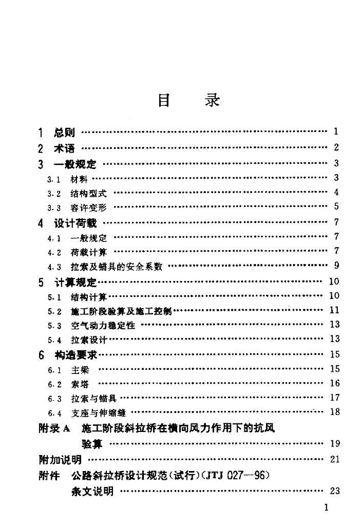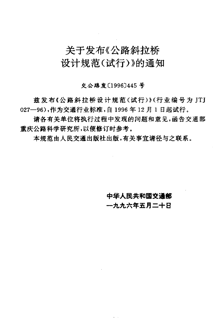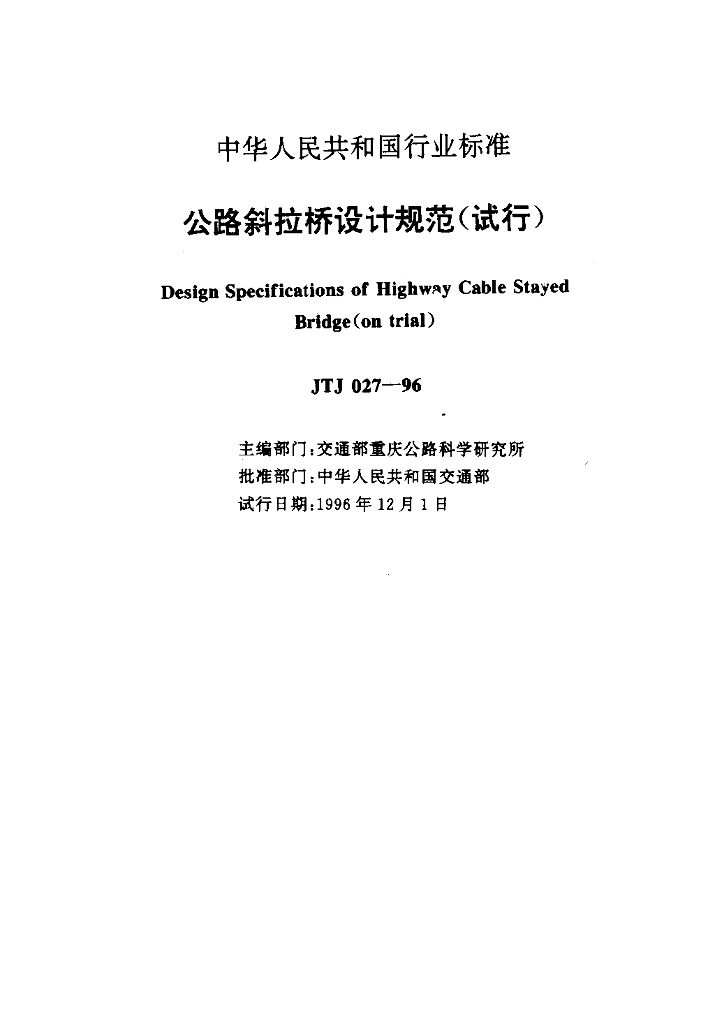 JTJ 027-1996 公路斜拉桥设计规范(试行)