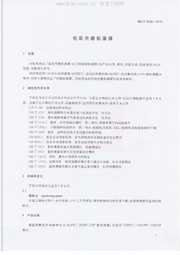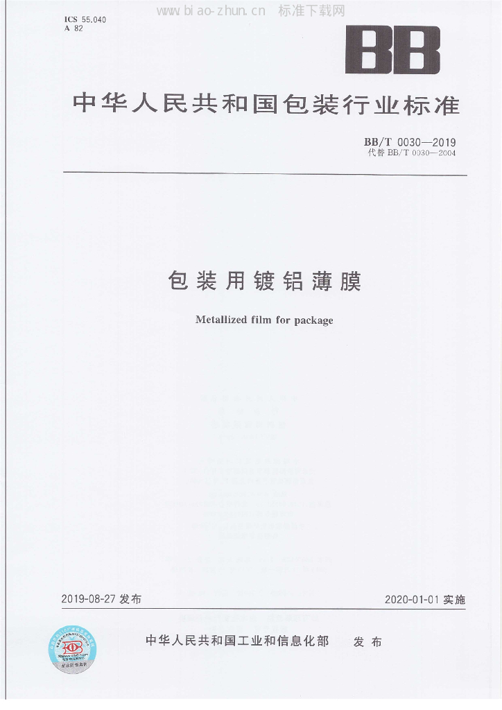 - 代替标准:BB/T 0030-2004
