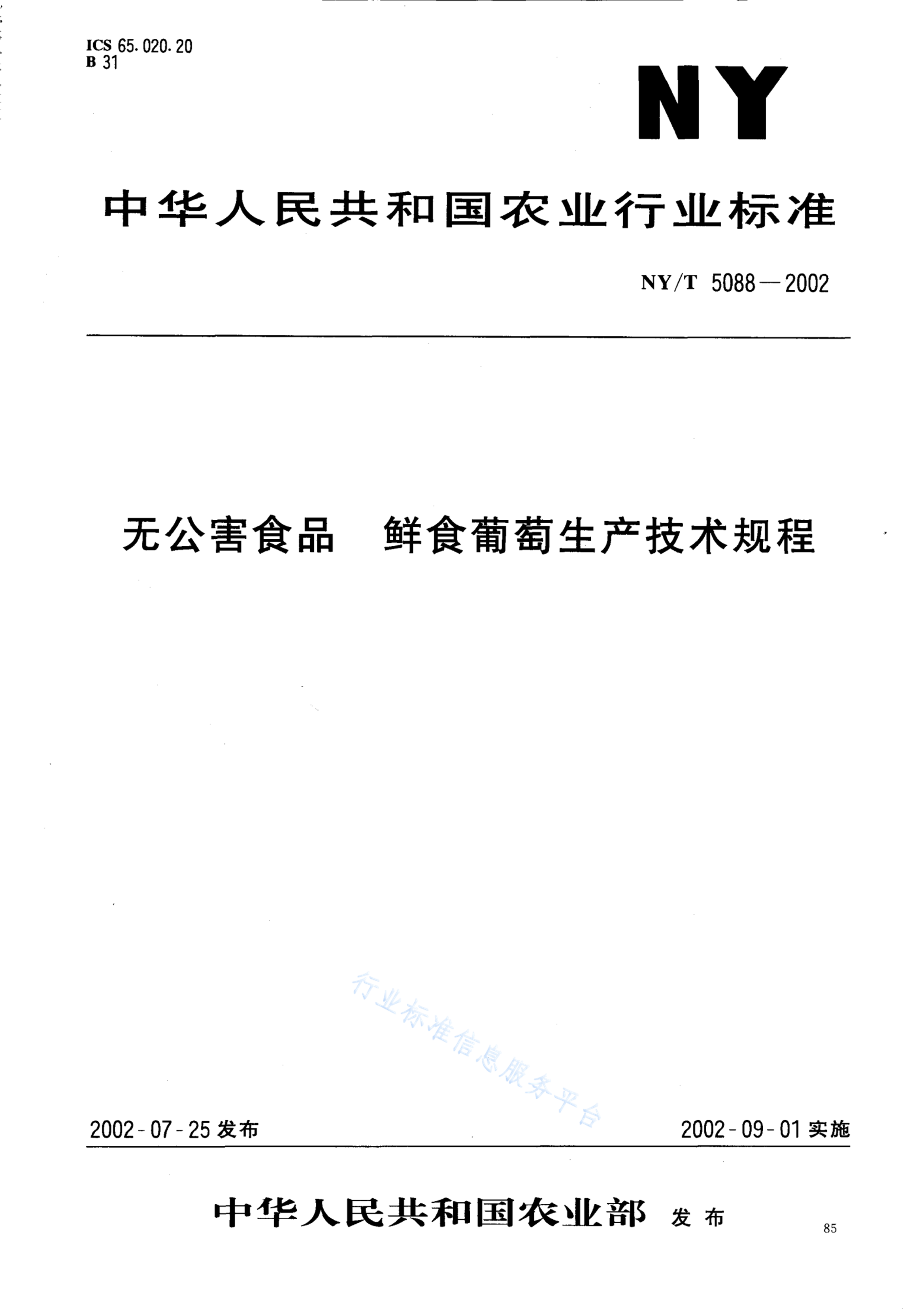 NY/T 5088-2002 无公害食品 鲜食葡萄生产技术规程