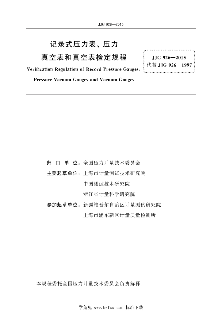 - 代替标准:JJG 926-1997