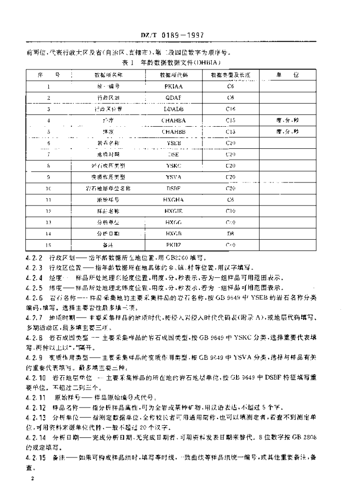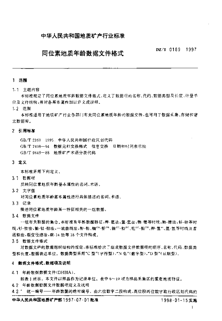 DZ/T 0189-1997 同位素地质年龄数据文件格式