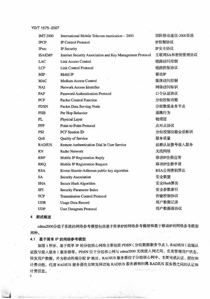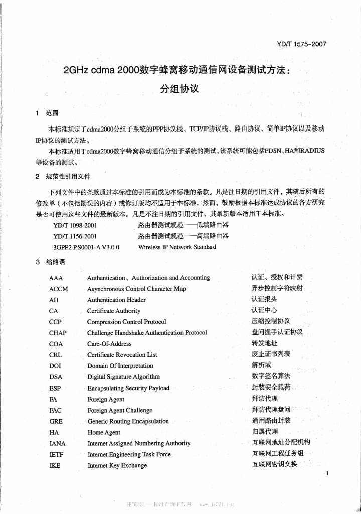 YD/T 1575-2007 2GHz cdma2000数字蜂窝移动通信网设备测试方法分组协议