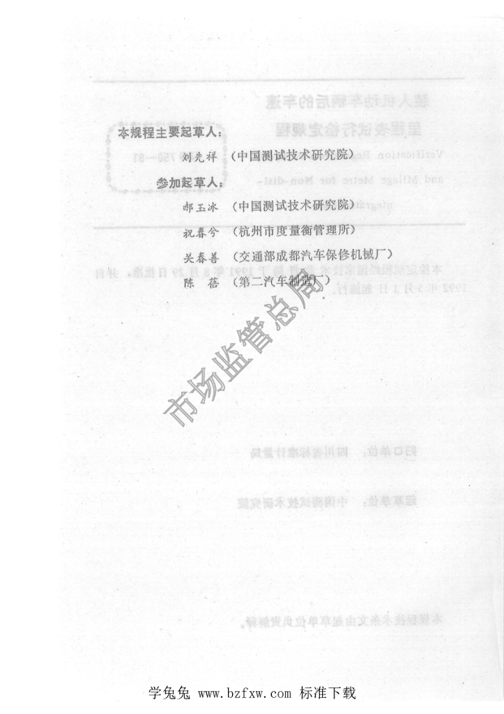 刘先祥(中国测试技术研究院)、郝玉冰(中国测试技术研究院)、祝春兮(杭州市度量衡管理所)、关春善(交通部成都汽车保修机械厂)、陈蓓(第二汽车制造厂)