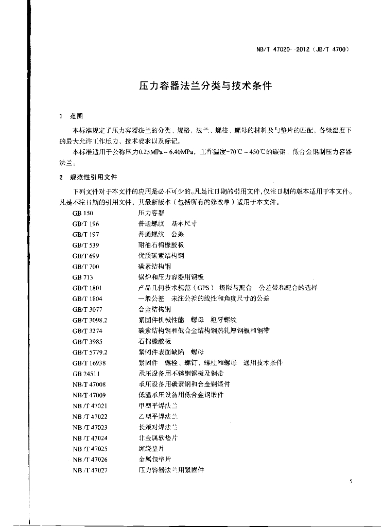 NB/T 47020~47027-2012 压力容器法兰、垫片、紧固件