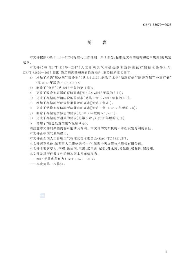 GB/T 33679-2026 人工影响天气用燃烧剂和致冷剂的存储技术条件