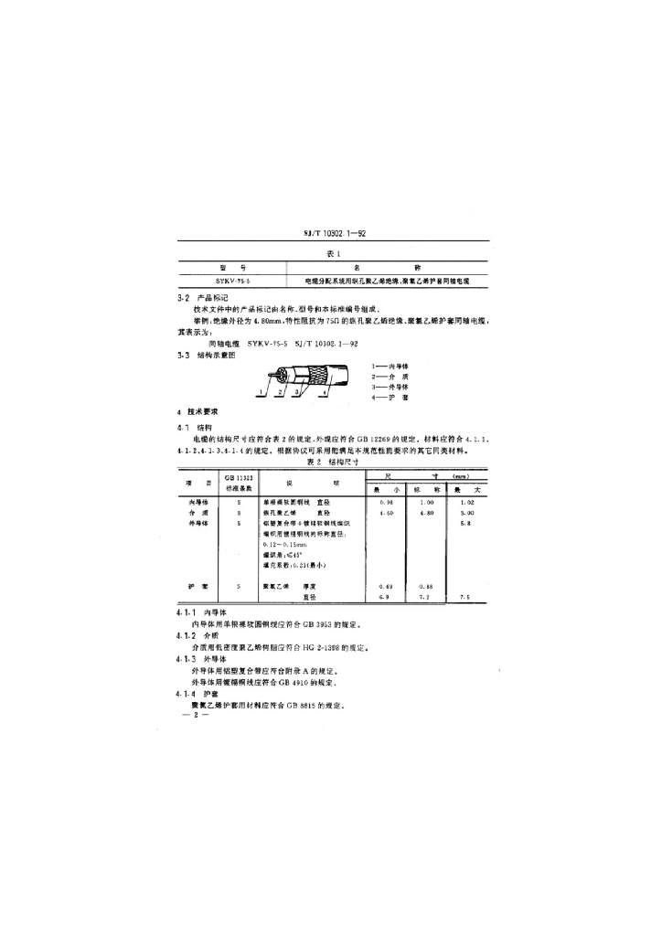 SJ/T 10302.1-1992 SYKV-75-5型电缆分配系统用纵孔聚乙烯绝缘同轴电缆