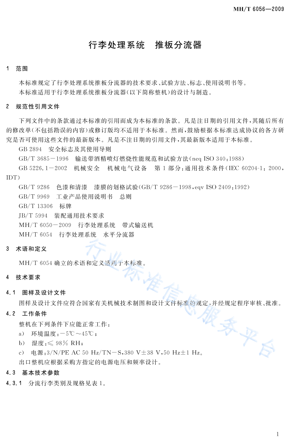 MH/T 6056-2009 行李处理系统 推板分流器