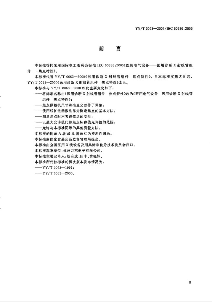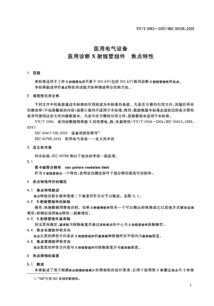 YY/T 0063-2007/IEC 60336:2005 医用电气设备医用诊断X射线管组件焦点特性