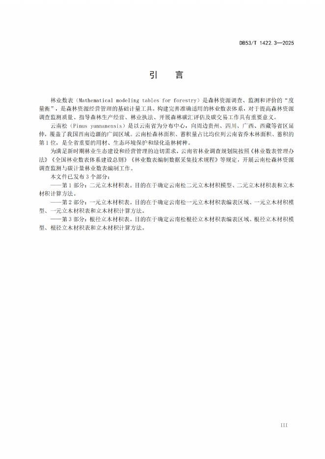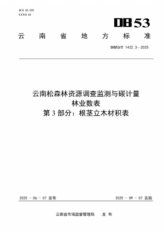 DB53/T 1422.3-2025 云南松森林资源调查监测与碳计量林业数表 第3部分:根茎立木材积表
