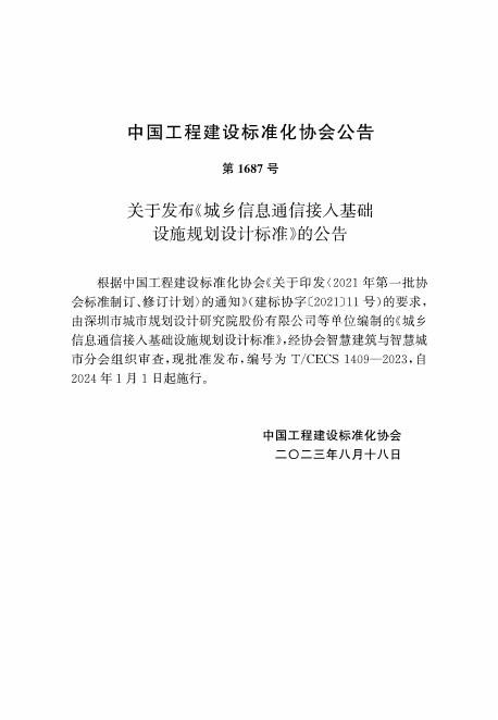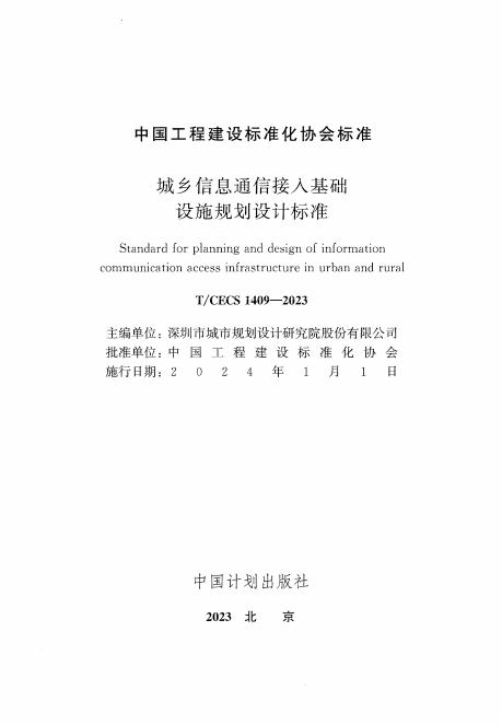 T/CECS 1409-2023 城乡信息通信接入基础设施规划设计标准