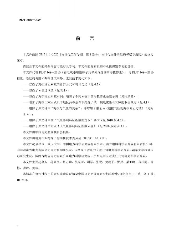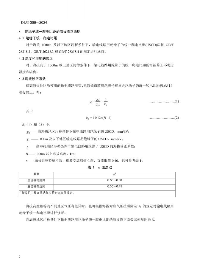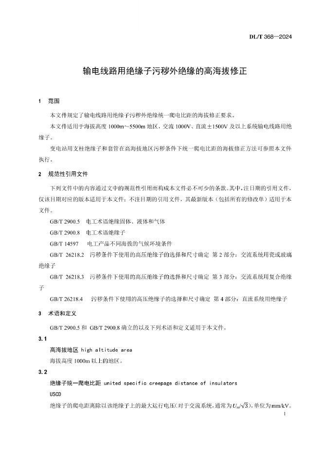 DL/T 368-2024 输电线路用绝缘子污秽外绝缘的高海拔修正