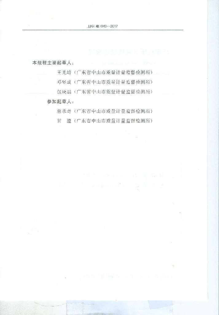 王光培(广东省中山市质量计量监督检测所)、邓坚成(广东省中山市质量计量监督检测所)、包庚喆(广东省中山市质量计量监督检测所)、蔡承奇(广东省中山市质量计量监督检测所)、甘潼(广东省中山市质量计量监督检测所)